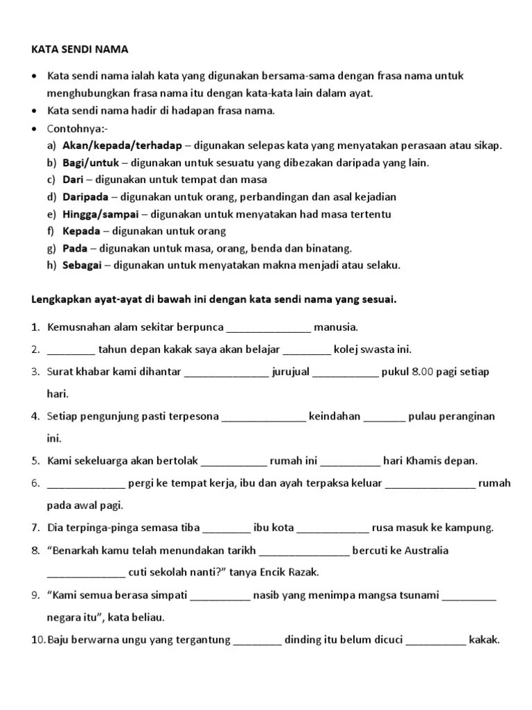 Nota Dan Latihan Kata Sendi Nama Bermanfaat Untuk Murid